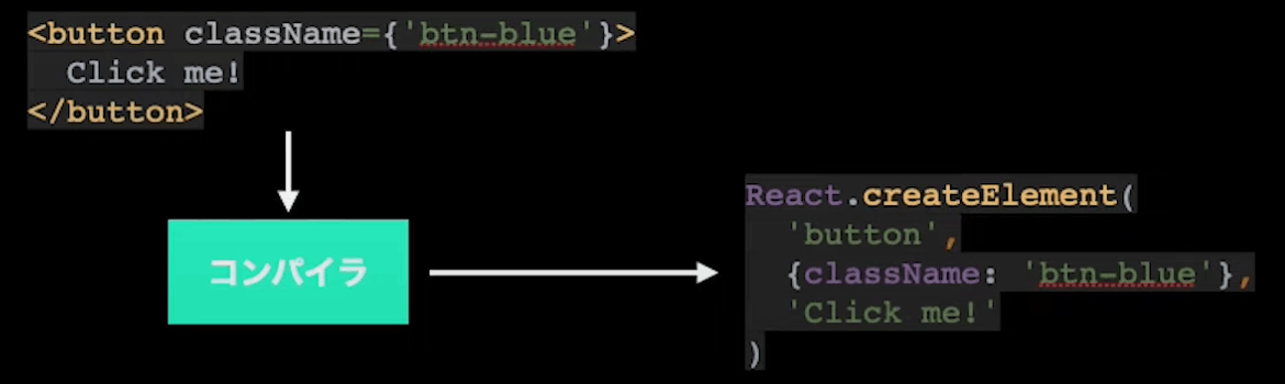- jsx→React.createElementに変換