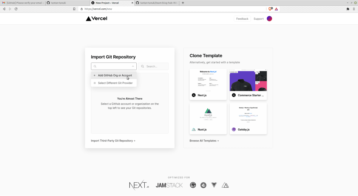 やったことといえばgithubとvercelに登録して画面ポチポチして