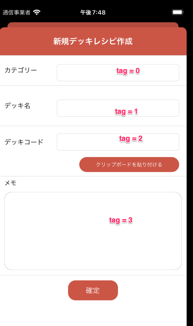 実装の際に、xibファイル上でtagを以下のように設定します。