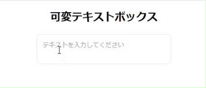 <h1 className="p-5 font-bold text-2xl">可変テキストボックス</h1>