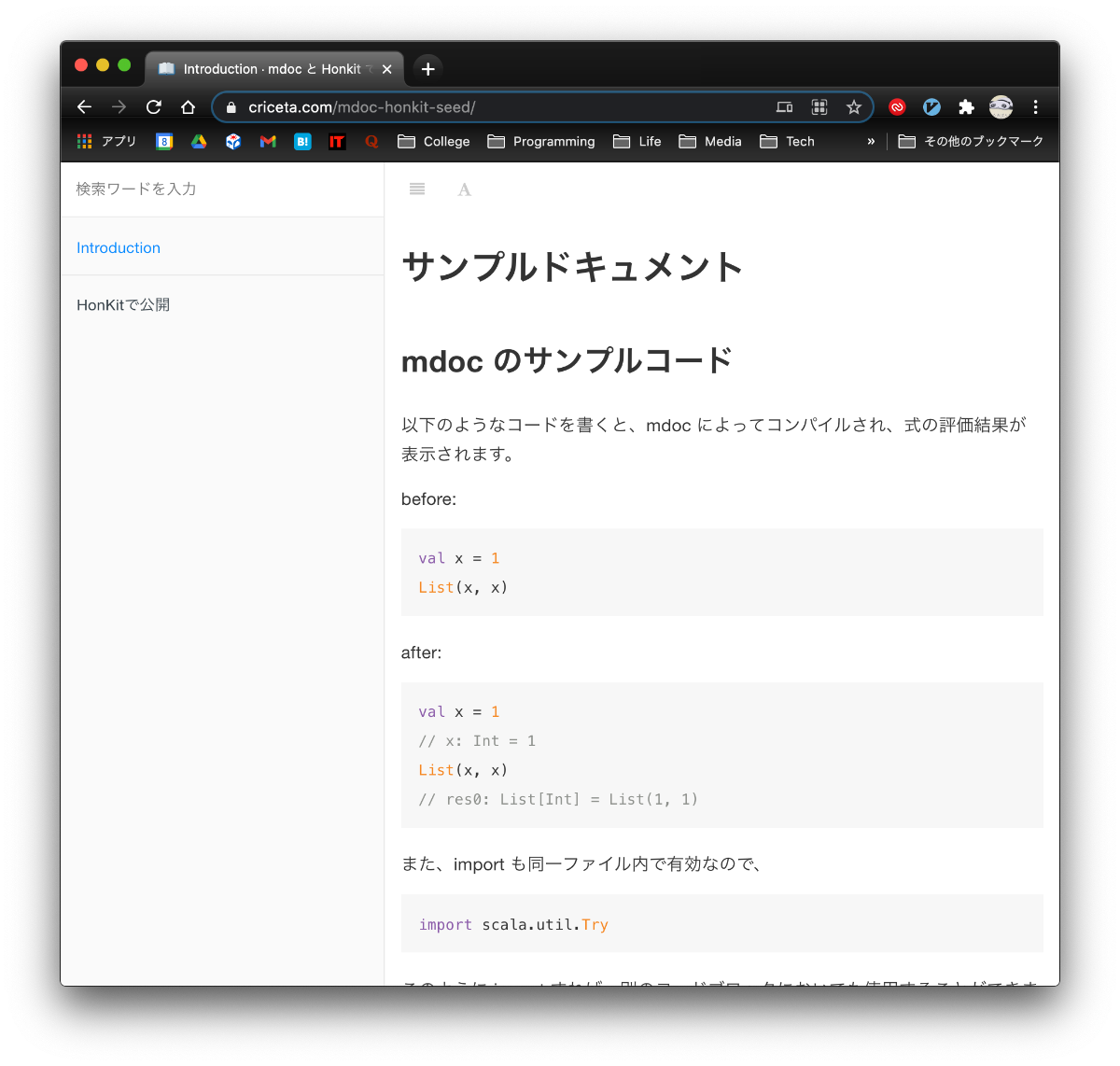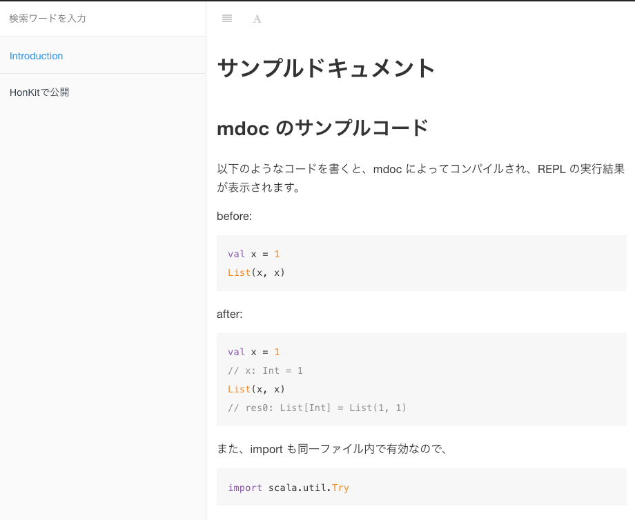 "title": "mdoc と Honkit で Scala ドキュメントを GitHub Pages に公開する",