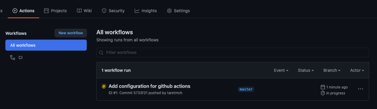 このファイルをコミットして master ブランチに上げると、うまく GitHub Actions が走りました!