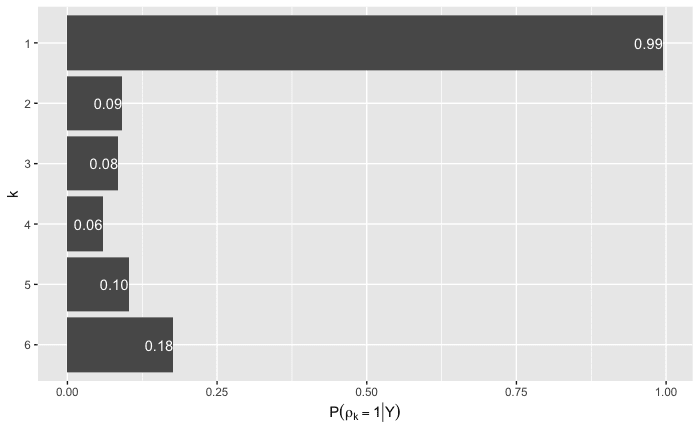 の際の\rho_k=0 の事前分布の分散を小さくしすぎるとサンプリングの収束が遅くなることがわかっている。 ↩︎\beta_k