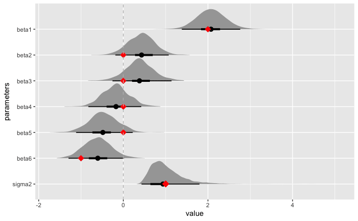 本記事では便宜的に前者を「完全な Spike-and-Slab 事前分布」、後者を「緩やかな Spike-and-Slab 事前分布」と呼び分けることにする。[1]