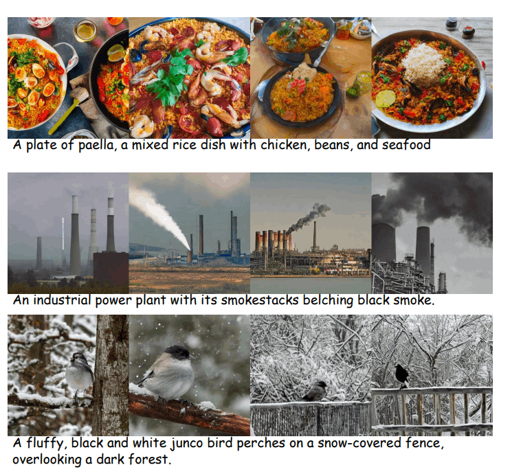 - 「概念」と「背景」の組み合わせから「キャプション」を生成することもできます。「背景」の単語はPlaces-365のような既存データセットのものが利用できます。ナイーブな実装としてはこの2つをランダムに組み合わせることですが、これでは「サッカーのフィールドでシロナガスクジラ」のような現実の世界であり得ない組み合わせになってしまいます。アブレーション実験の結果、このアプローチはうまくいかないことがわかっています。これは画像生成AIの学習範囲から大きく外れるためです。その代わりにGPT4を利用して、選択した「概念」に適した「背景のリスト」を生成しました。このアプローチなら「森の中の虎」「キッチンの猫」のような妥当な組み合わせの生成頻度を高め、全体の品質を向上させます(この点でOpenAIの利用規約が関係してきますが、これがgithubでのデータセット公開が遅れている理由でしょうか?)