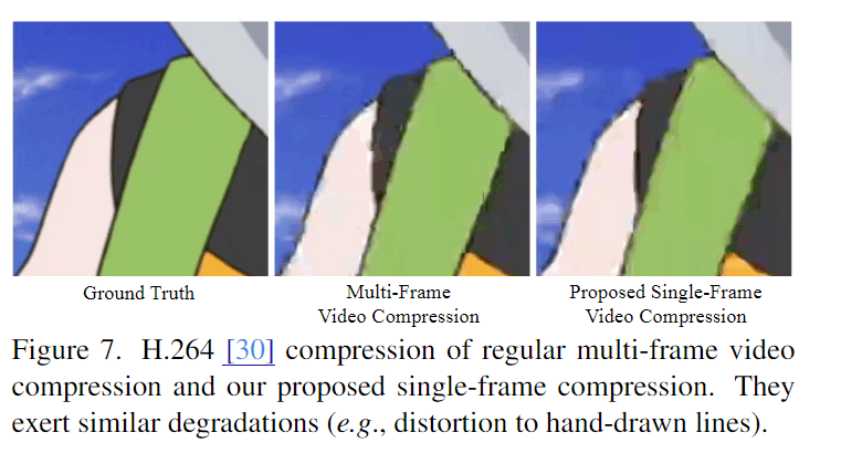 - 手書きのラインの動画圧縮のゆがみに対処するために、画像劣化モデルを提案した
