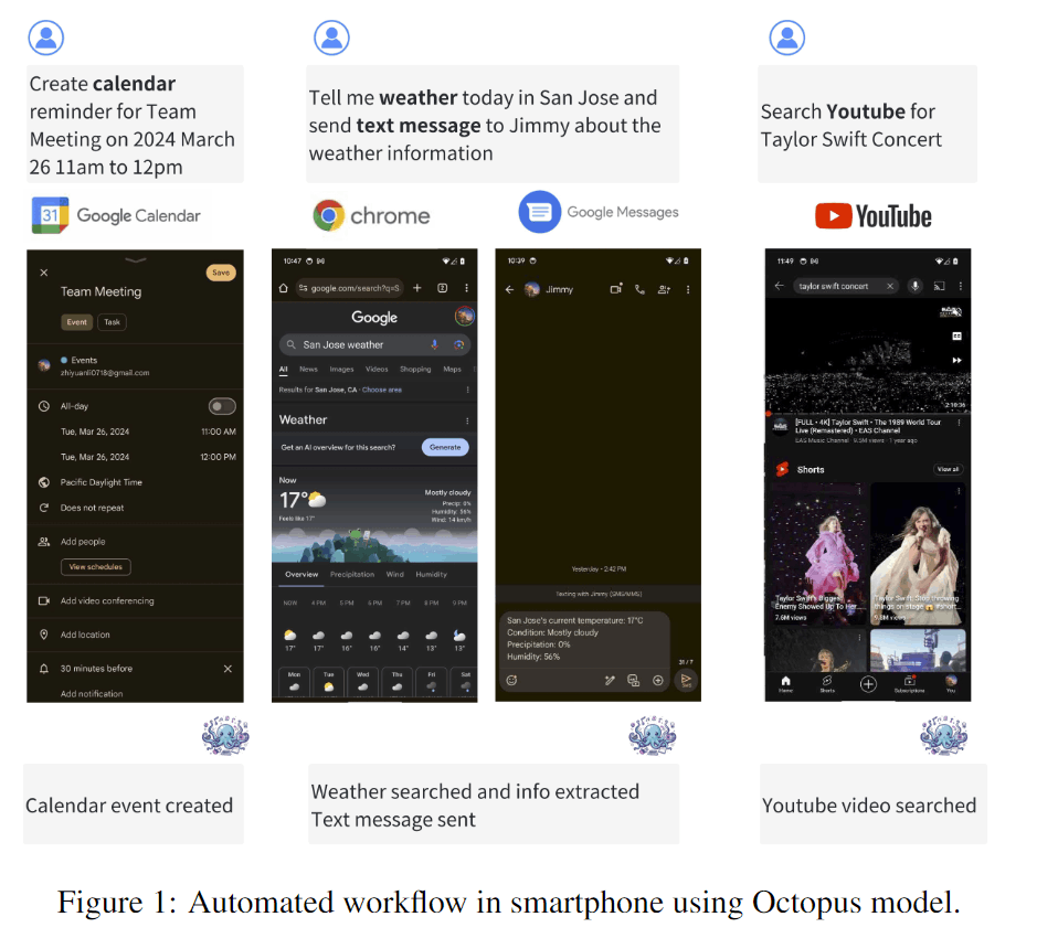 Octopus v2: On-device language model for super agentというVLMの論文を読んだので面白かった点だけに絞って紹介します。スタンフォード大学の研究です。