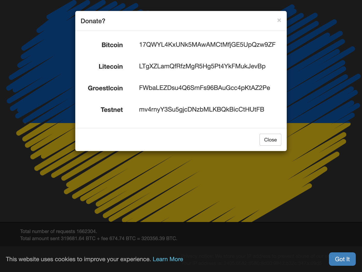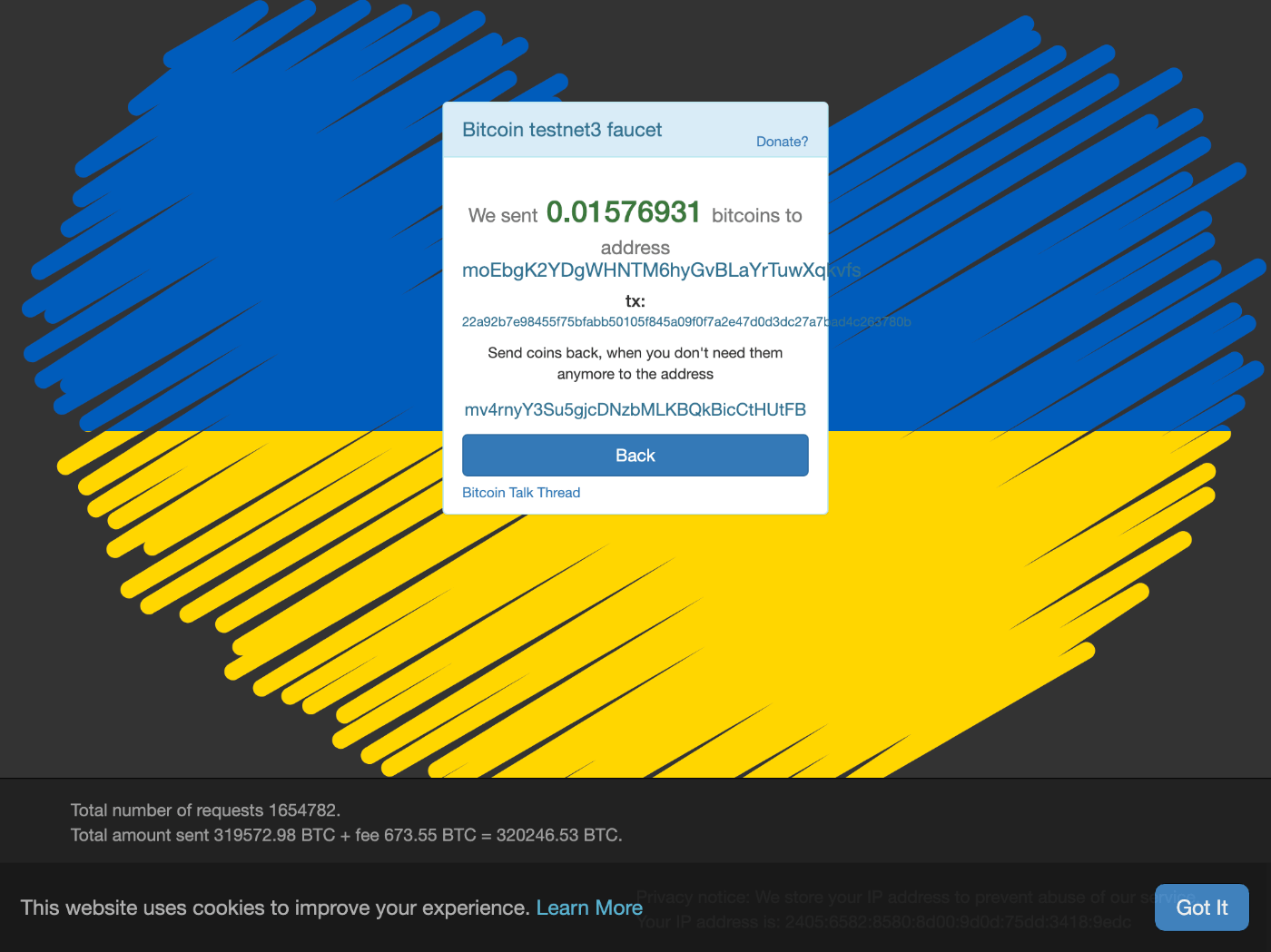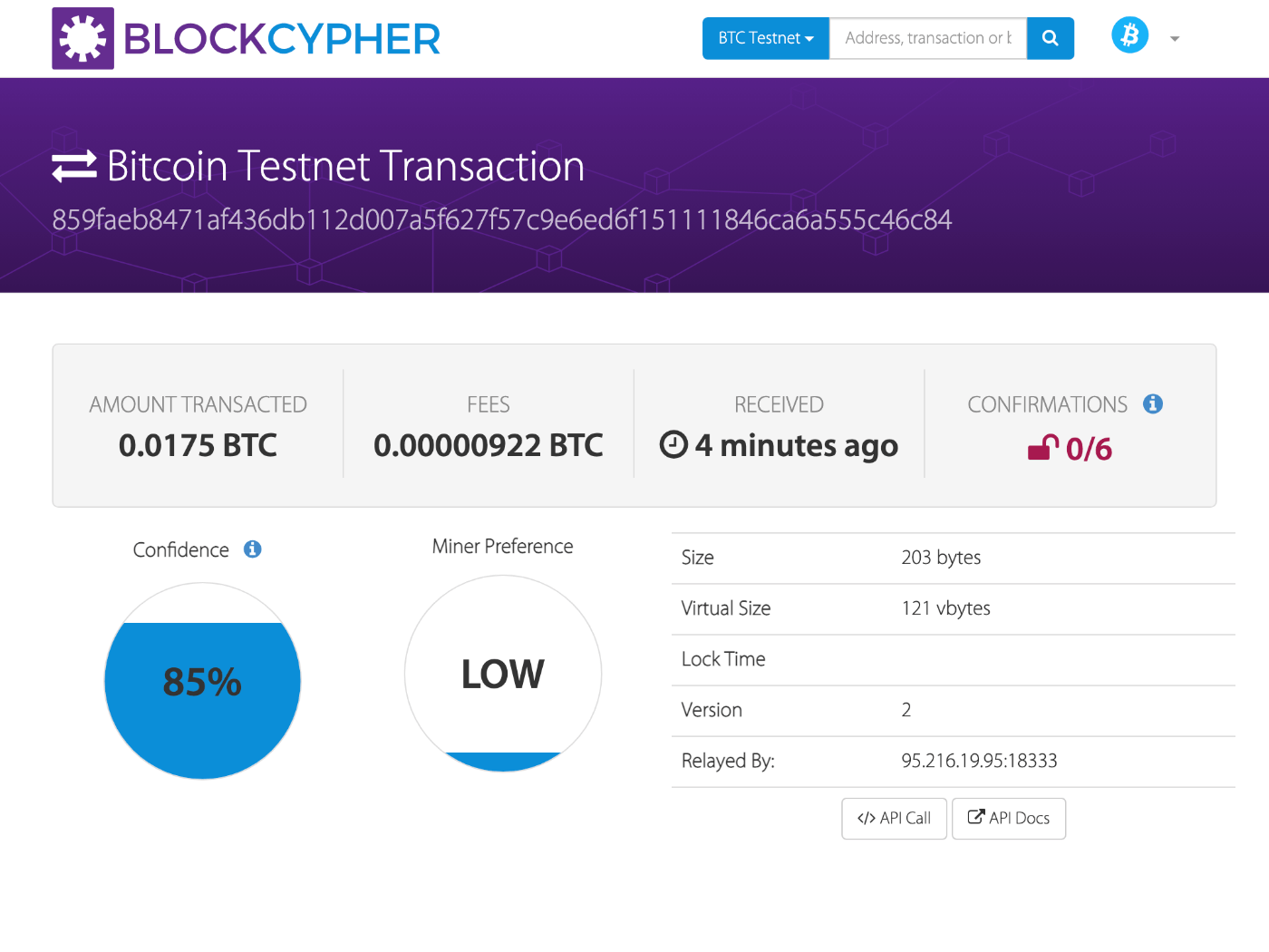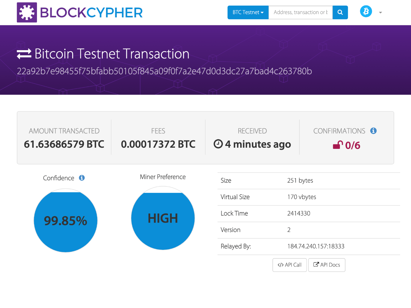 Protocol = Bitcoin, Network = Testnet を選んで Get ボタンを押す