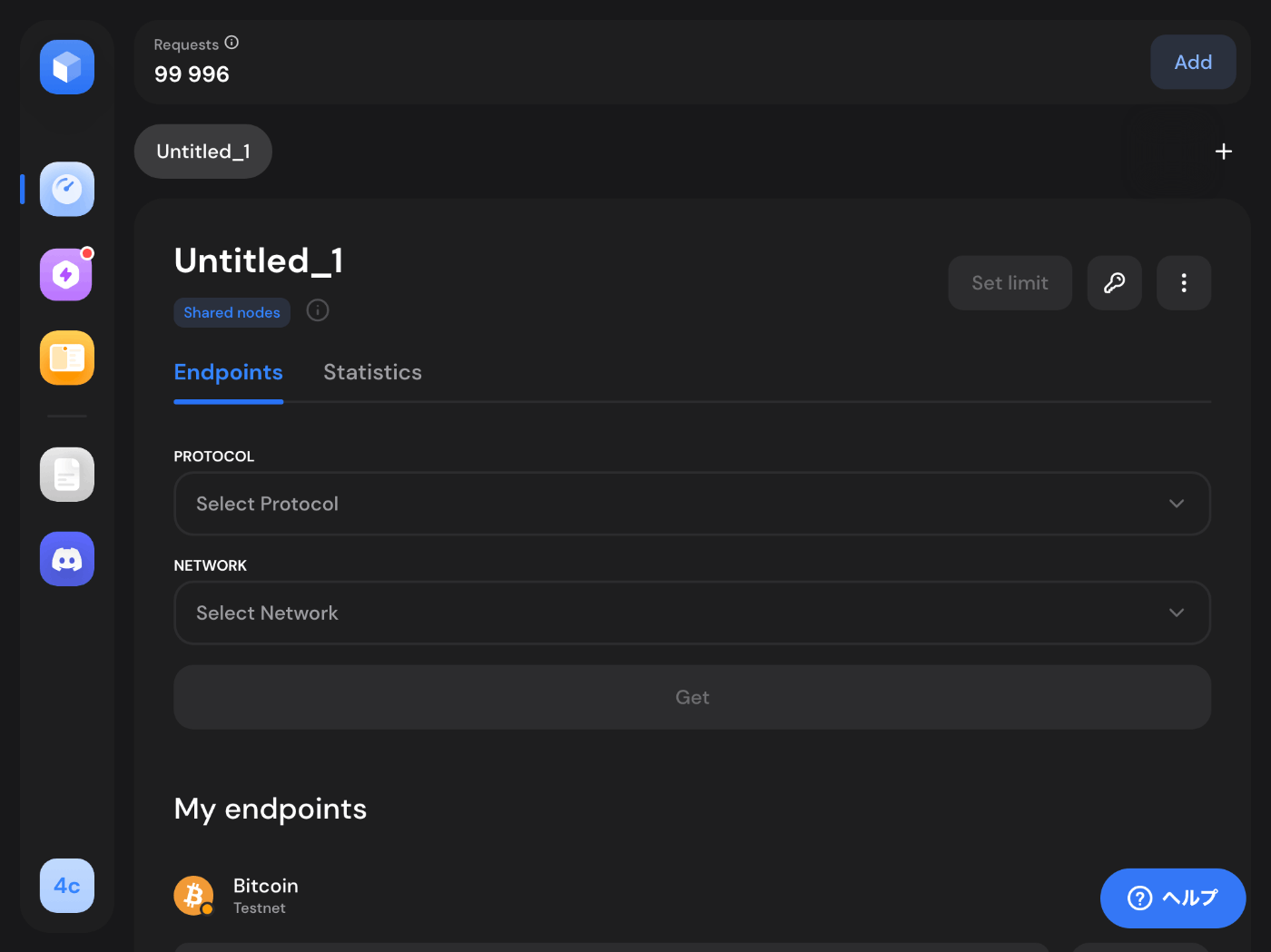 Bitcoin Testnet の JSON-RPC URL が MyEndpoints のセクションに表示される