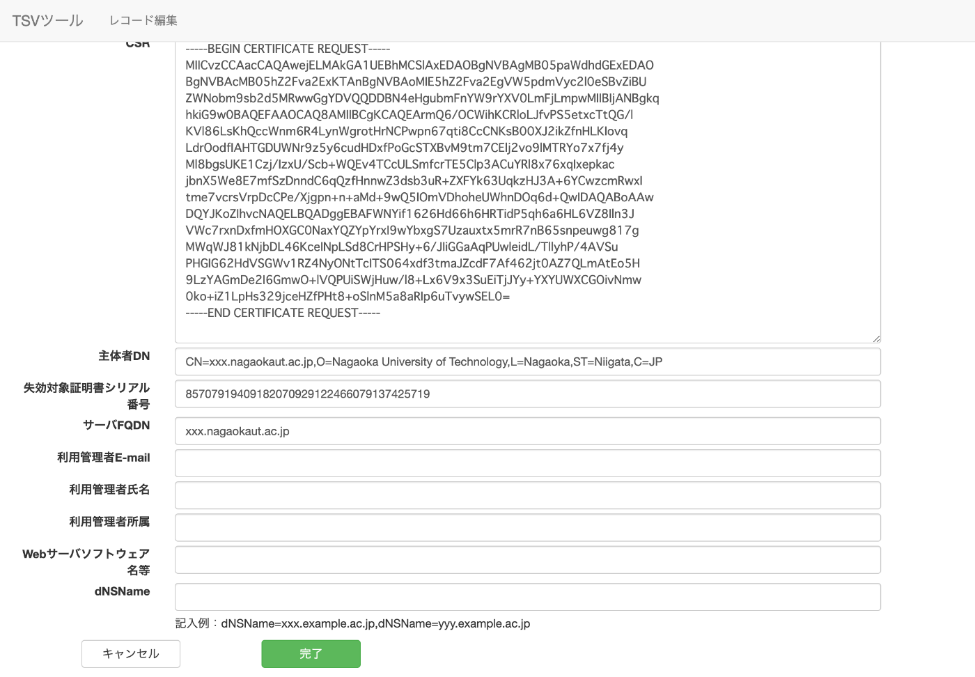 Common Name (e.g. server FQDN or YOUR name) []:xxx.nagaokaut.ac.jp
