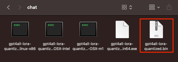 chatディレクトリがあるのでそこに先ほどダウンロードしたbinファイルを移動