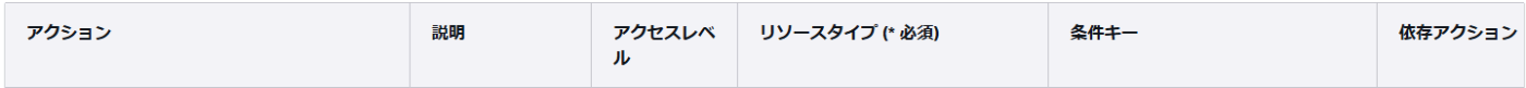 AmazonS3のアクション、リソース、条件キーのページを見てみると以下のようになっています。