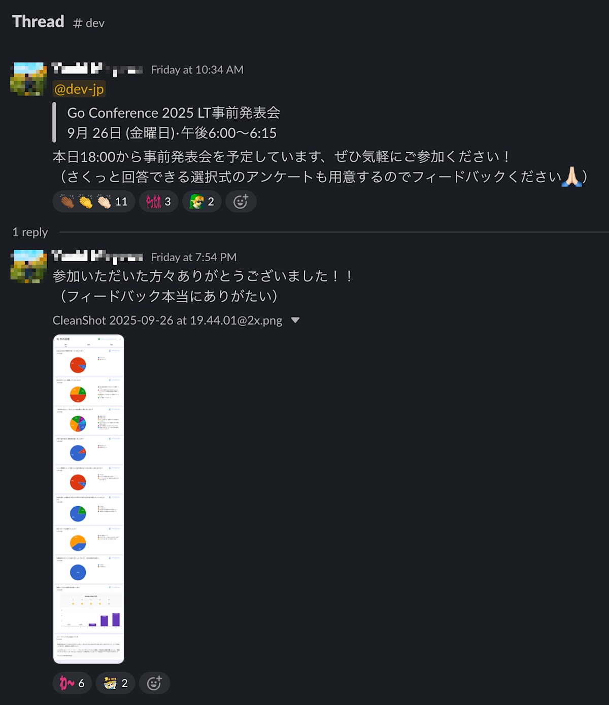 また、事前に社内でデモを行なってアンケートによるフィードバックも貰ったりしていました。みんな忙しいなか思っていたより多くの人が参加してくれて良い組織だなあと改めて感じました。