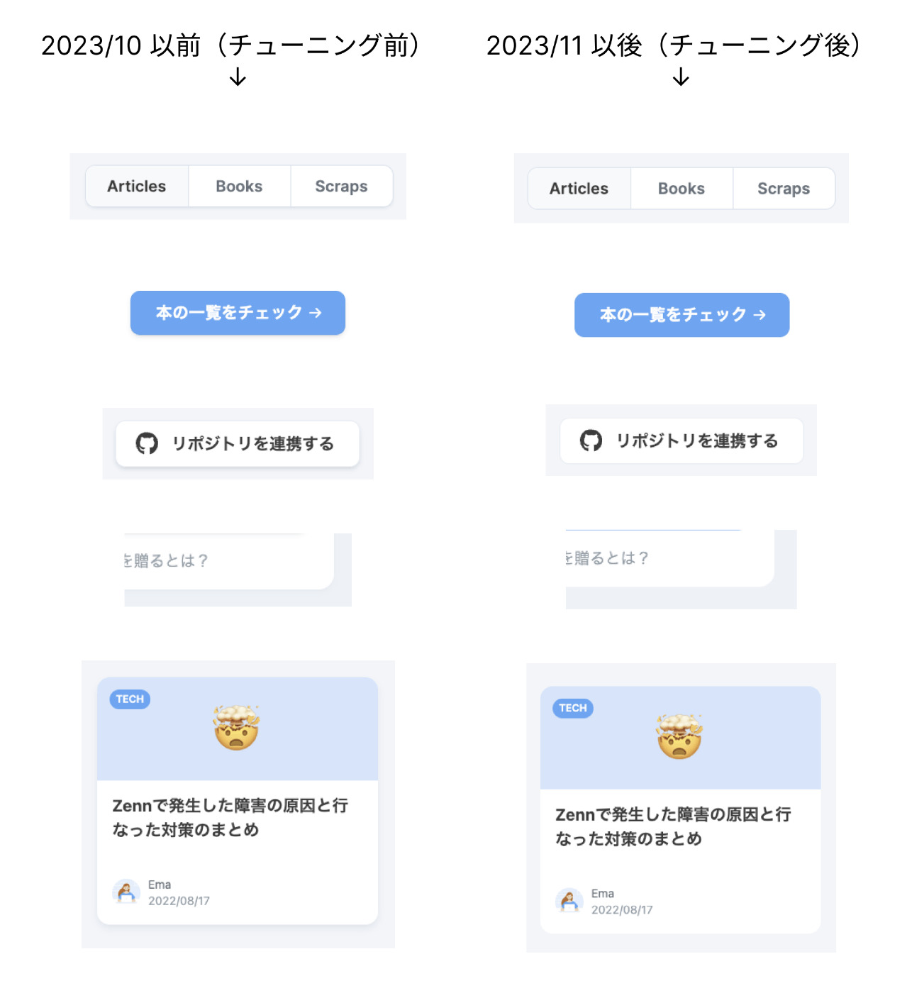 ぱっと見の変化に乏しいため、気づかない方も多いと思います。実は、目指した方向としてはチューニング適用に気付けないほどの小さな変化ながらも、ユーザー体験が向上することでした。
