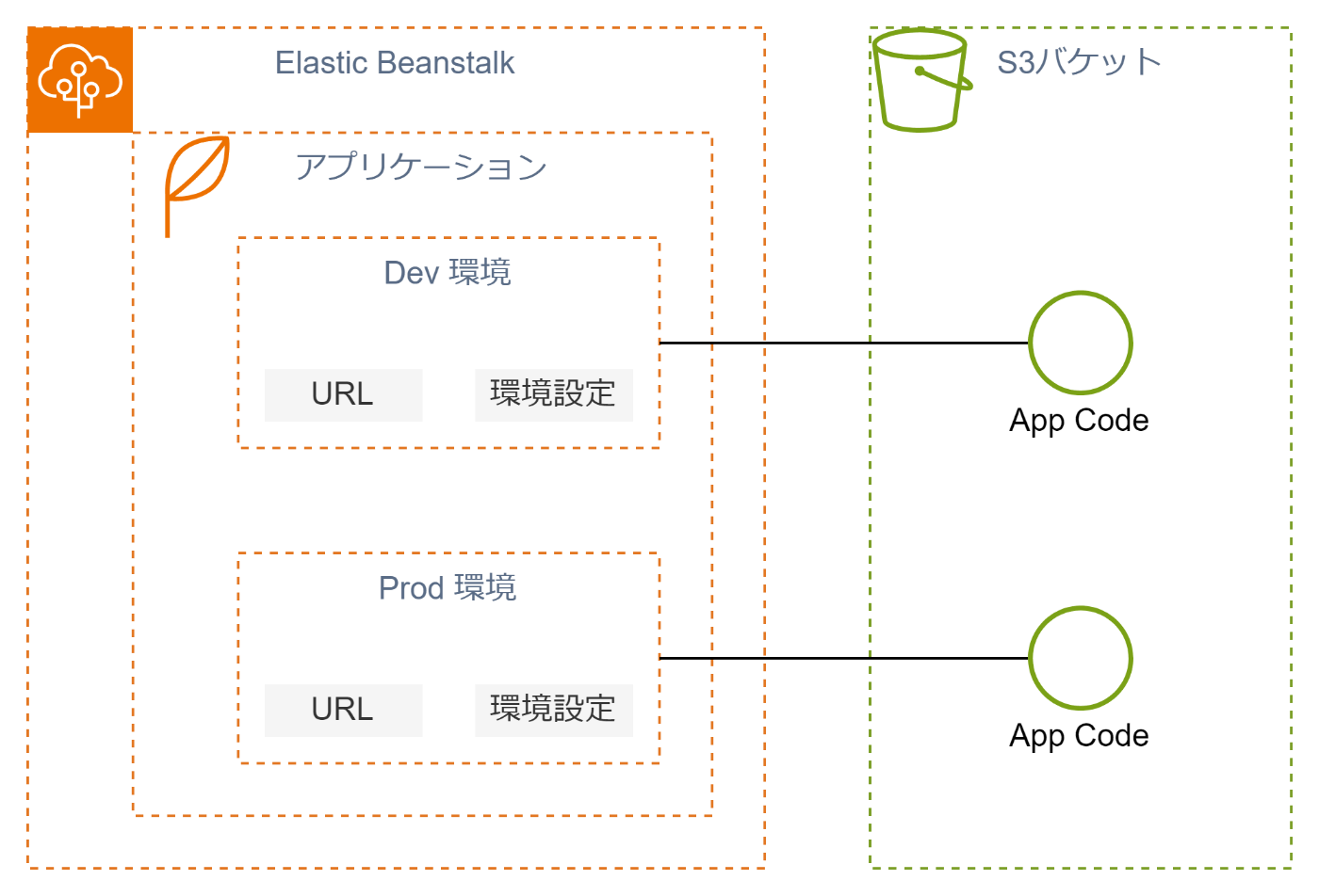 アプリケーションバージョンはデプロイ可能なコードを指し、S3上でバージョン管理されます。