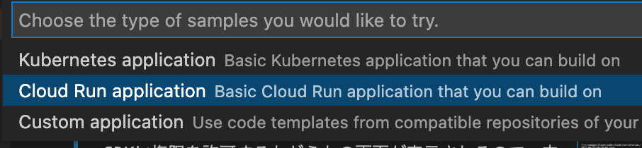 コマンドパレットでCloud Code: New Application