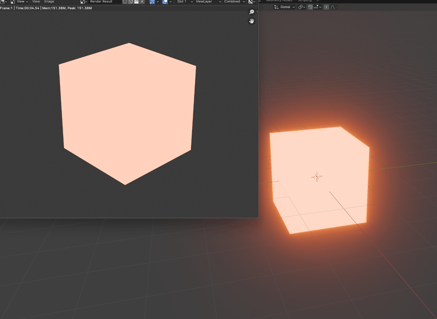 EEVEEではそのままレンダリングすると発光した状態でレンダリングされますが、Cyclesだと発光していない状態でレンダリングされてしまいます
