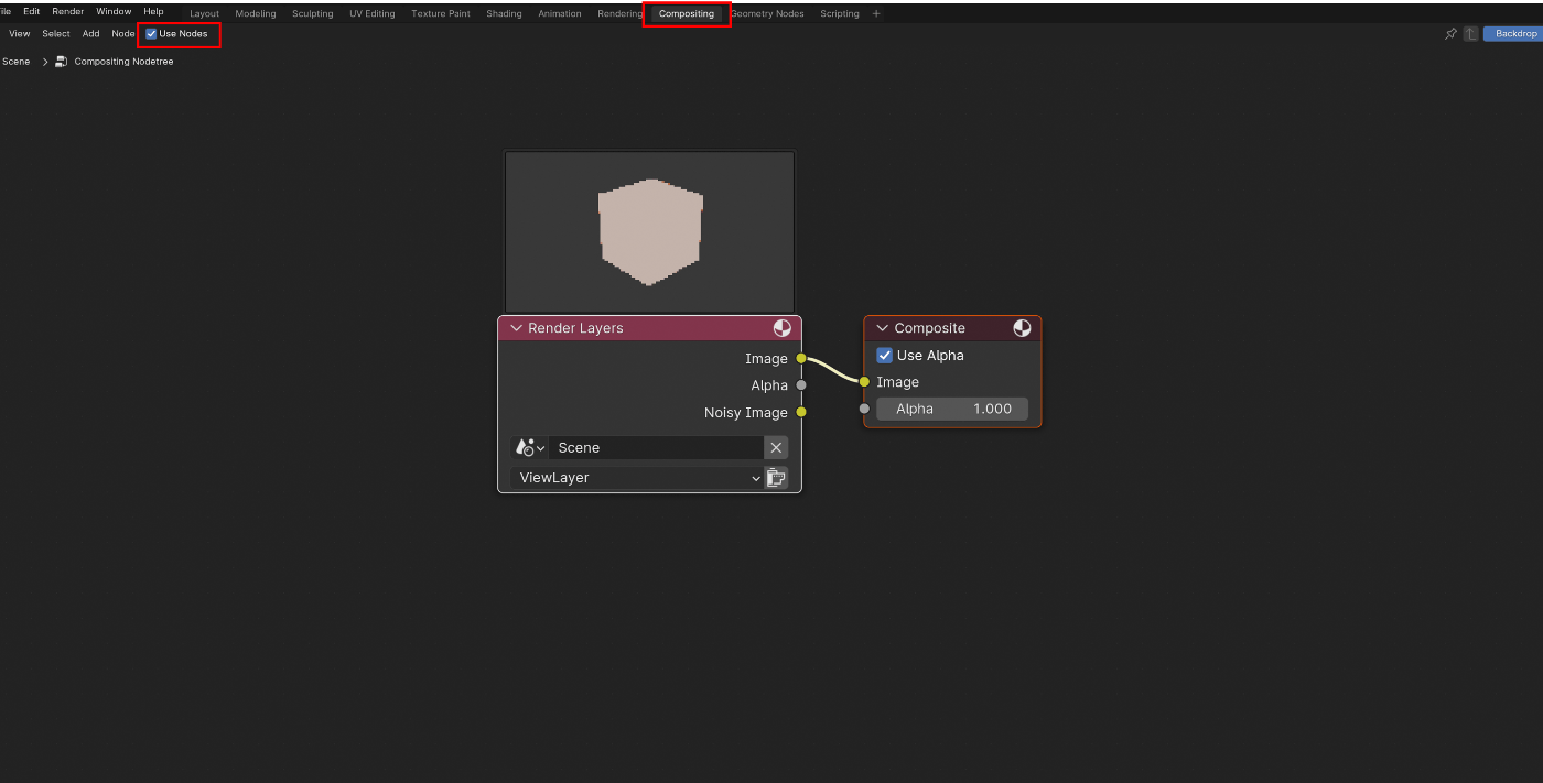 1.「Compositing」ウィンドウに切り替えて「Use Nodes」を有効にする