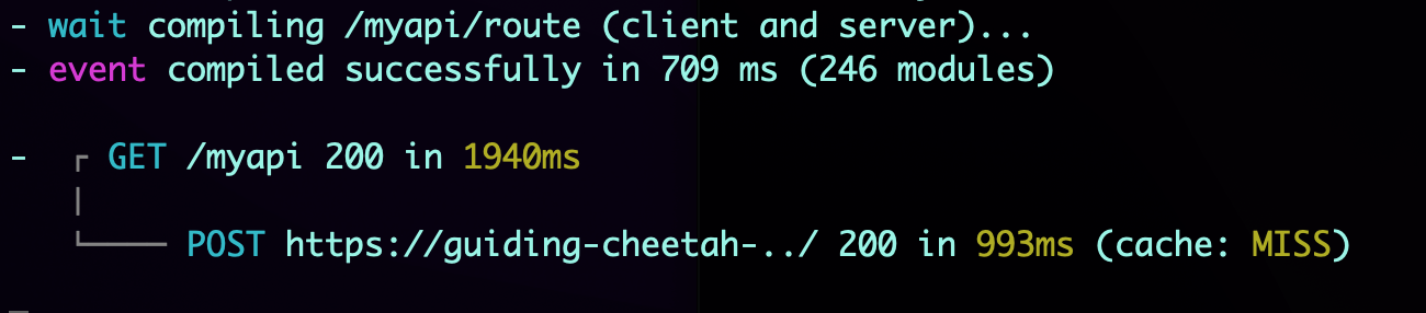Next.jsサーバ(yarn.dev)のコンソールに下記のようなログが出力されます。
