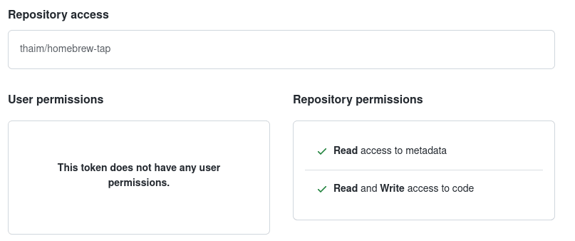 2つ目の注意点として、homebrew-tapリポジトリにpushするための権限を設定する必要がある。