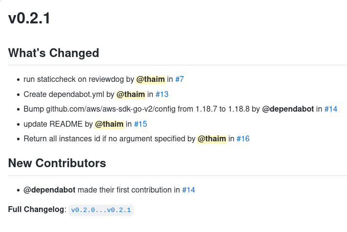 どちらもプルリク単位で列挙してくれるのでわかりやすくなる。特にgithub-nativeを指定すれば、GitHub の automated release notes に従ってChangelogを生成してくれる。