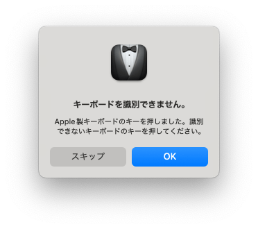 Apple製キーボードのキーを押しました。識別できないキーボードのキーを押してください。