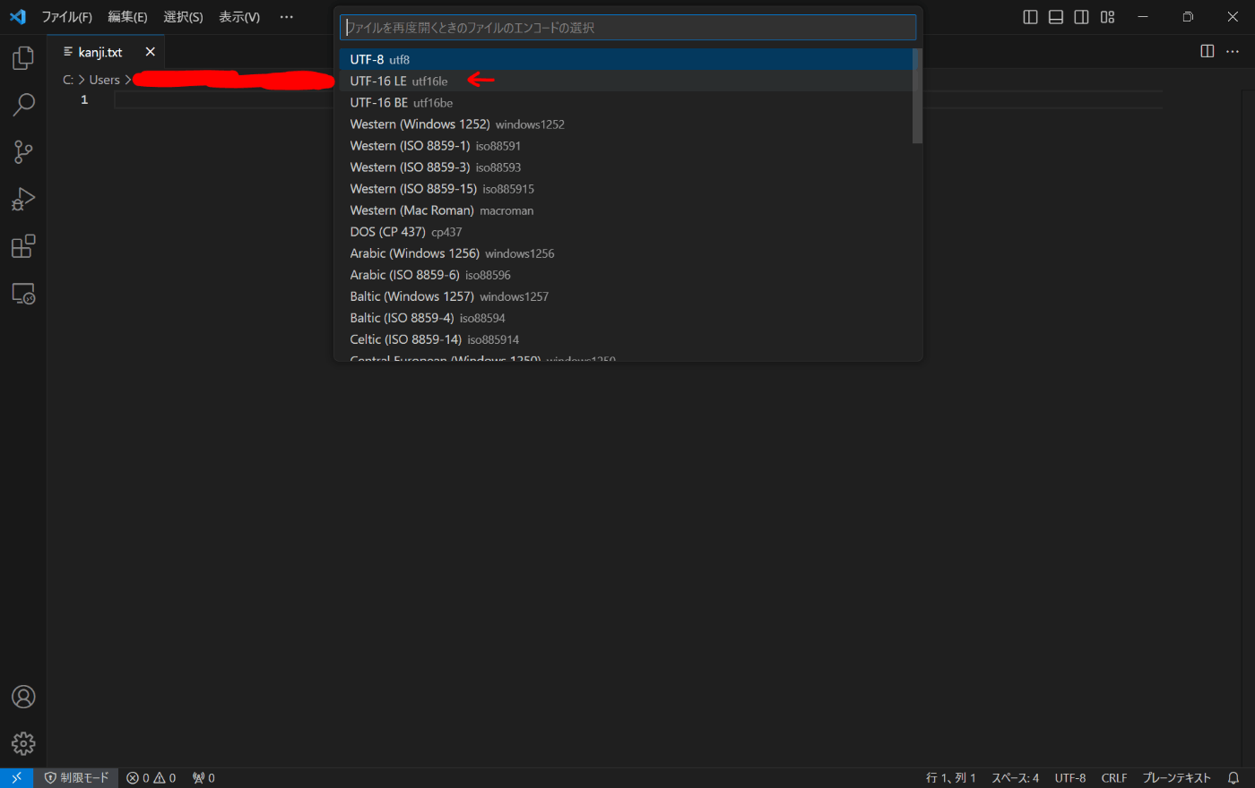 UTF16-LEを選択する