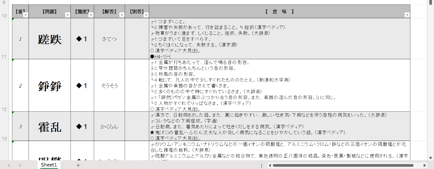 - 漢字逞筆様のExcelファイル