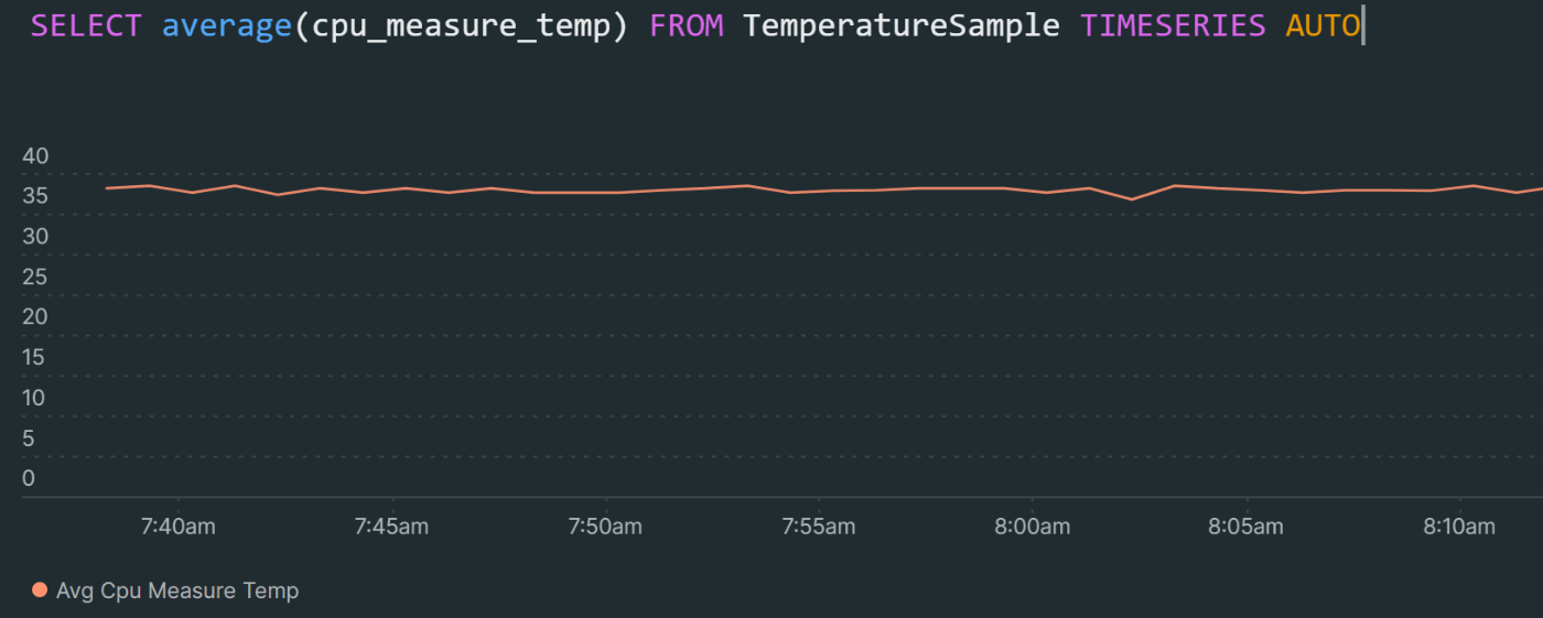 SELECT average(cpu_measure_temp) FROM TemperatureSample TIMESERIES AUTO