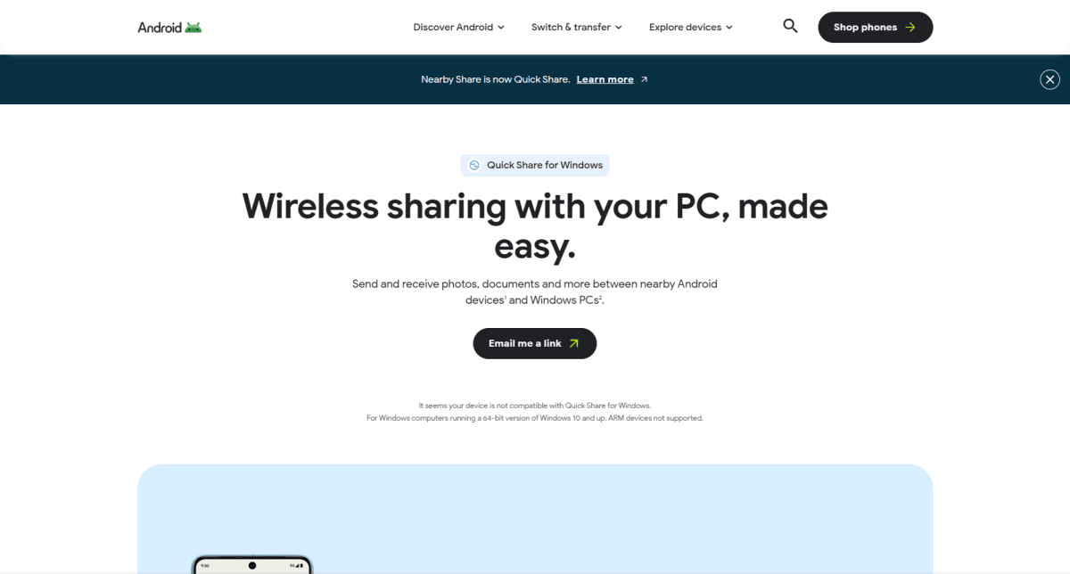 GoogleのNearby ShareがQuick Shareに変わったらしいので、Windows版をダウンロードしようとしたら、Microsoft Edgeへの露骨な対応が見られたので愚痴ります。