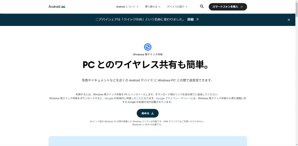 お使いのデバイスはQuick Share for Windowsに対応していないようです。