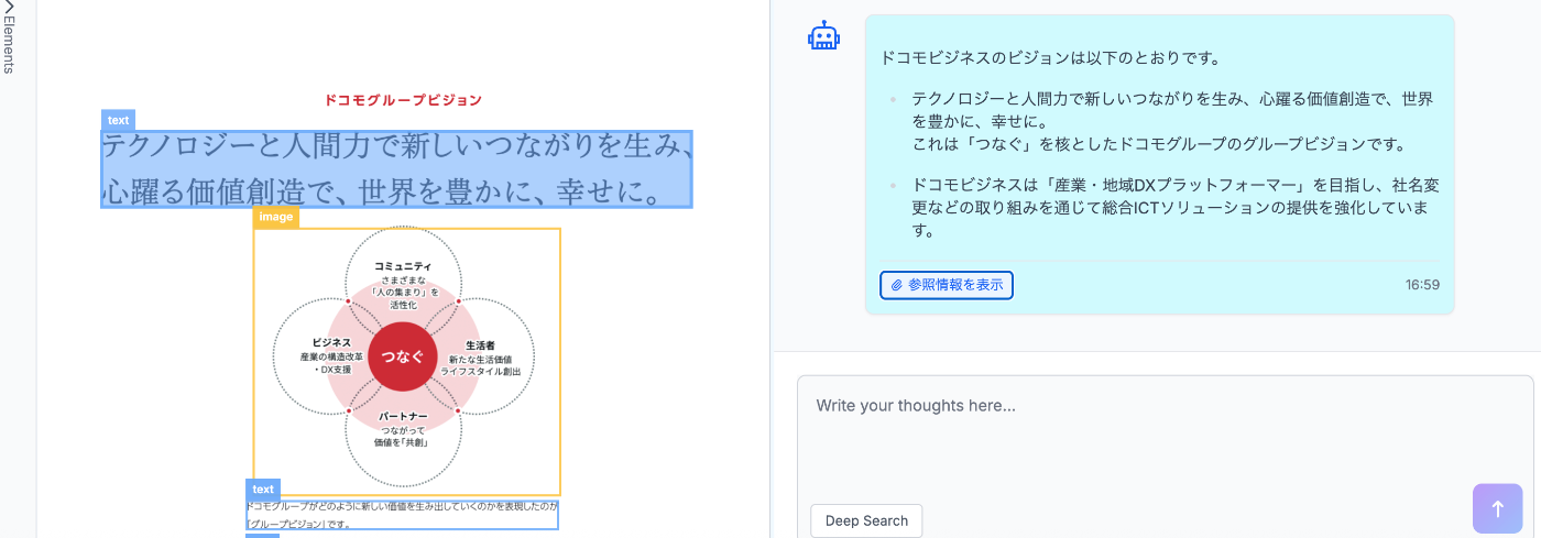 ドコモビジネス(旧NTTコミュニケーション)から出ている、非構造化データを生成AIに適した構造化データに変えるツールやエージェントを利用できるサービスです。