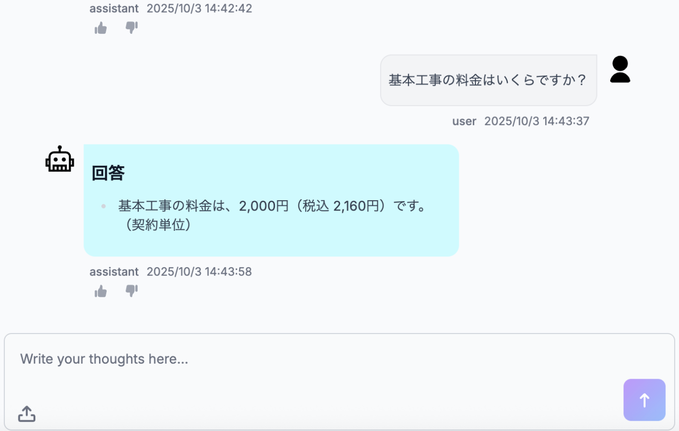左側には、会話したスレッド(履歴)が残り、スレッドを選択すると、以前の会話から再開できるようです。