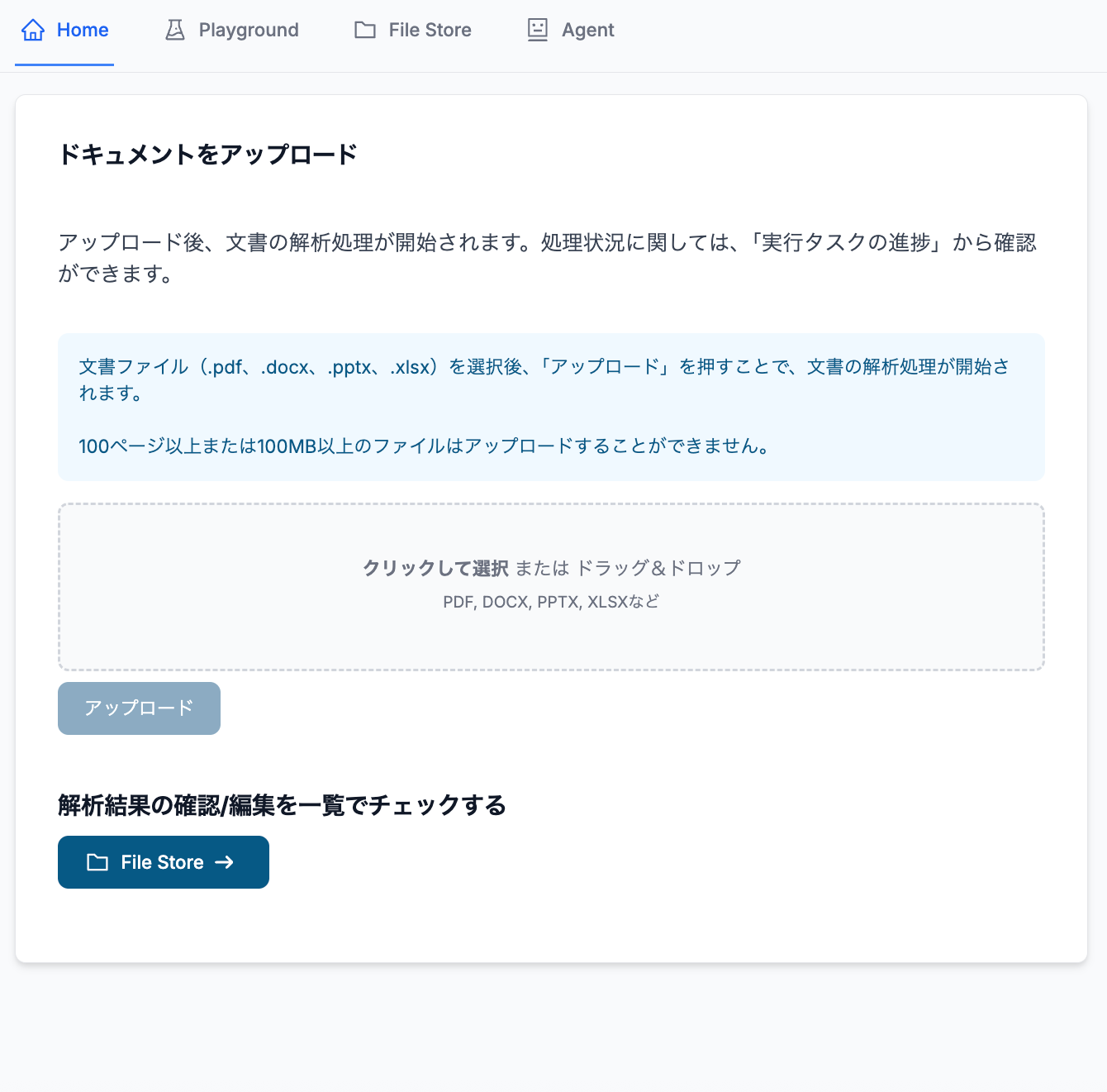 UIからアップロードした場合、変換後のドキュメントは自動的に内部でベクトルストアに格納されるそうです。(APIでは変換のみの利用も可能。)