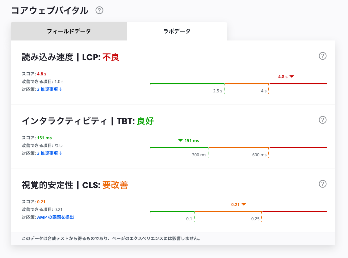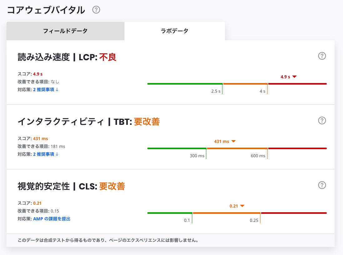 対応後は TBT の速度があがりましたが、注意書きに書かれている通り、AMP ページが無効になったので対応したのですが外しました😇