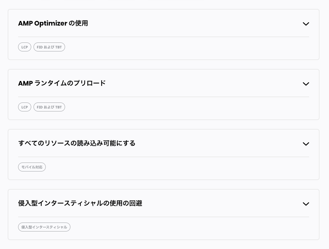 結局対応したのは、preload と AMP Optimizer の2つだけでした