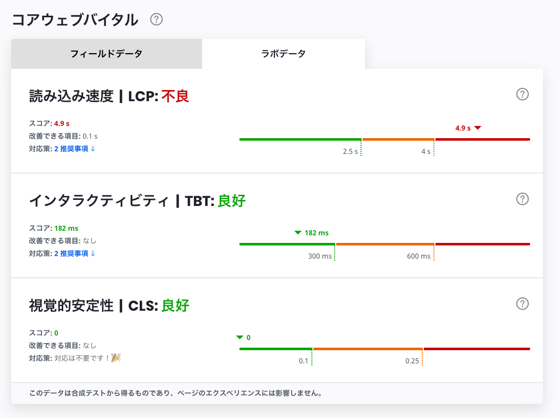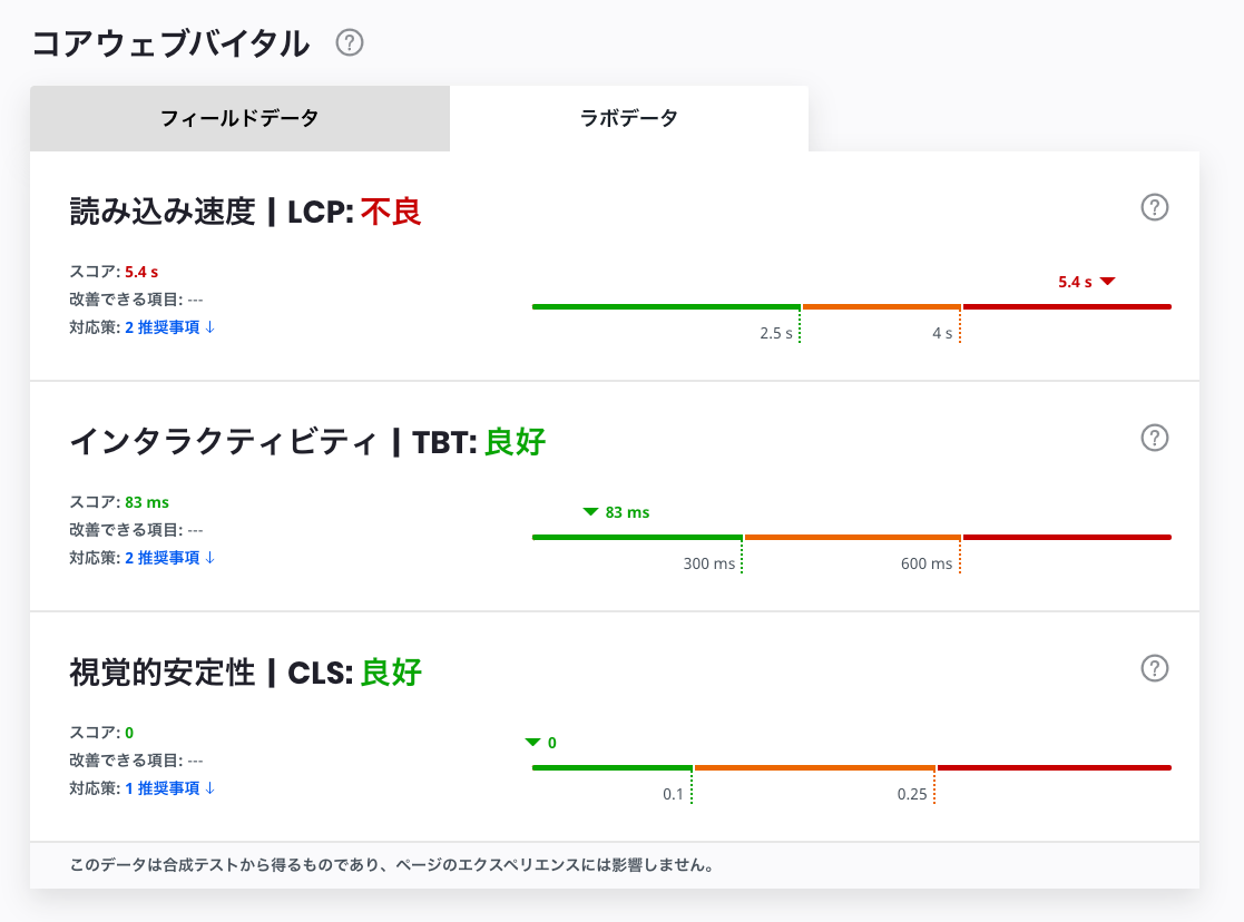 対応後はインタラクティビティ(TBT)が改善され、良好になりました