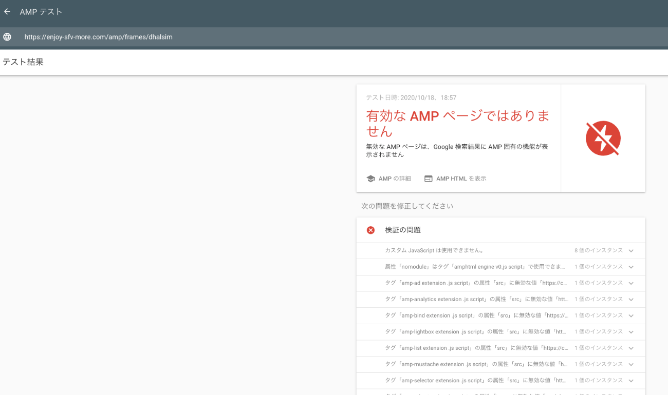 AMP-AD で広告を入れいているので手動で問題がないか確認を進められます