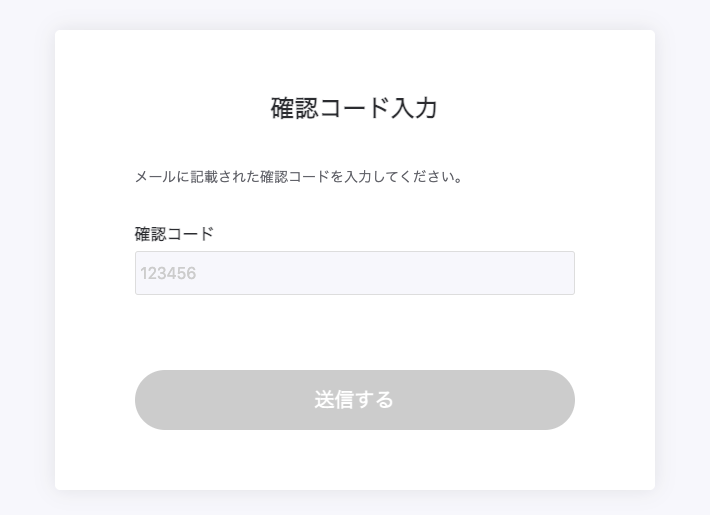 メアドとパスワードを入れると、メールで確認コードが飛んでくる