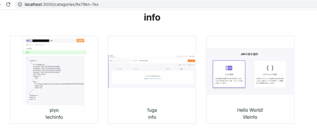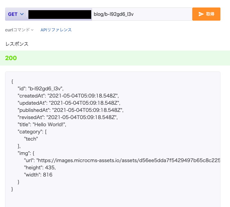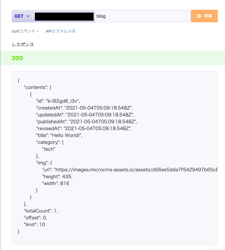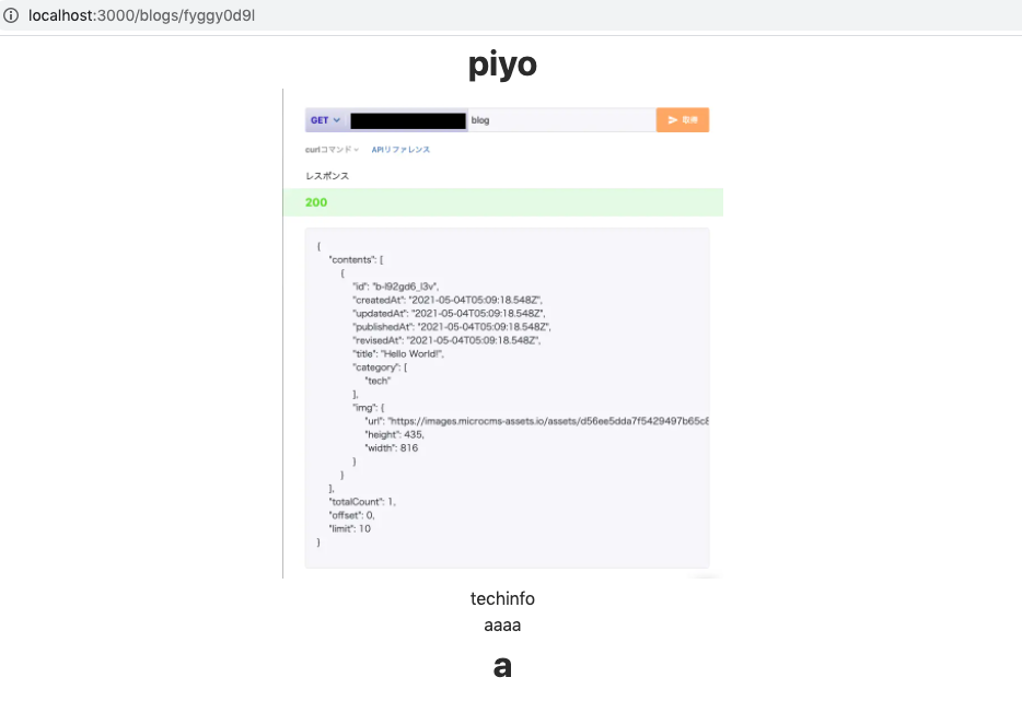 一覧用のAPIだが、blog/${id} で叩くと単体でデータが取れる
