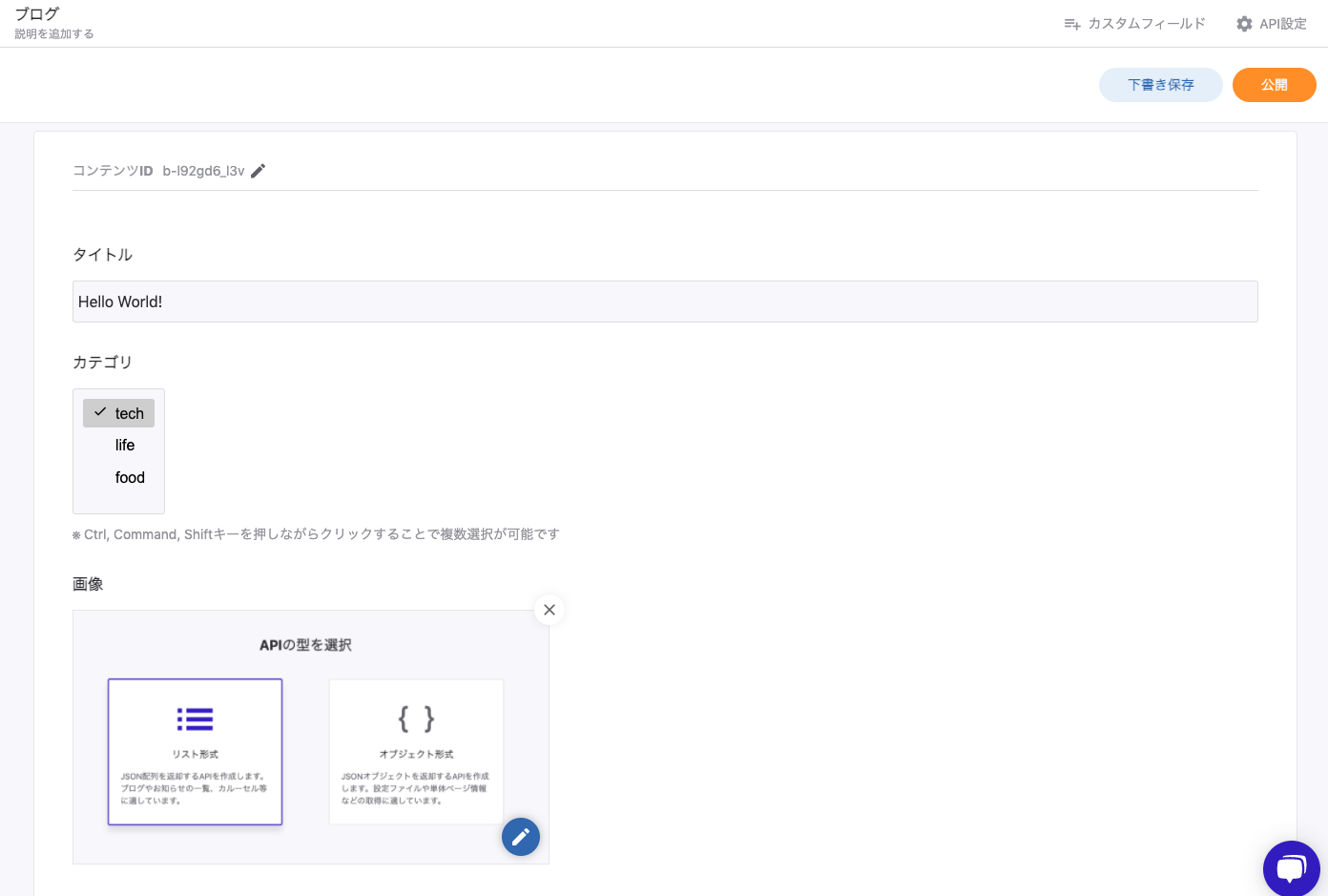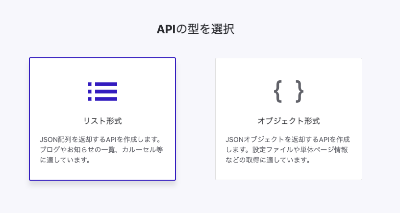 API の型はブログの一覧を取るAPIなので、リスト形式を指定