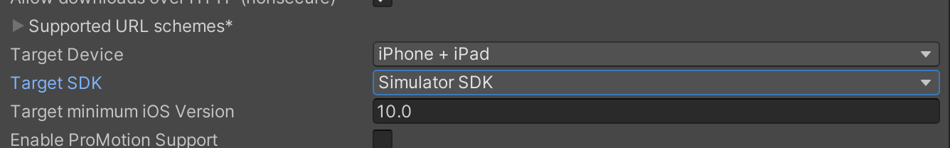Project Settings->Other Settings->Target SDKを Simulator SDK