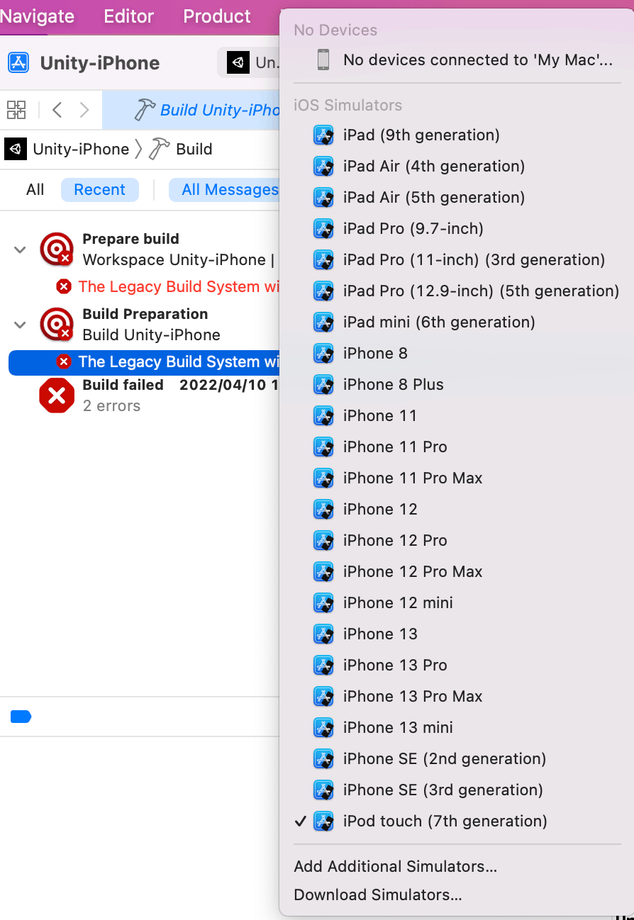 【Unity】XCodeのシミュレーターで動作させる