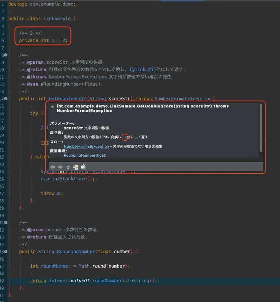 たった{@link }で囲うだけなので、