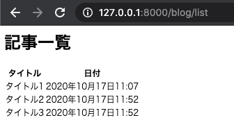 今回、記事一覧は post_list というリスト型で変数が template で渡されているので for ループで展開し、それぞれの記事タイトルと日付を取り出していきます。