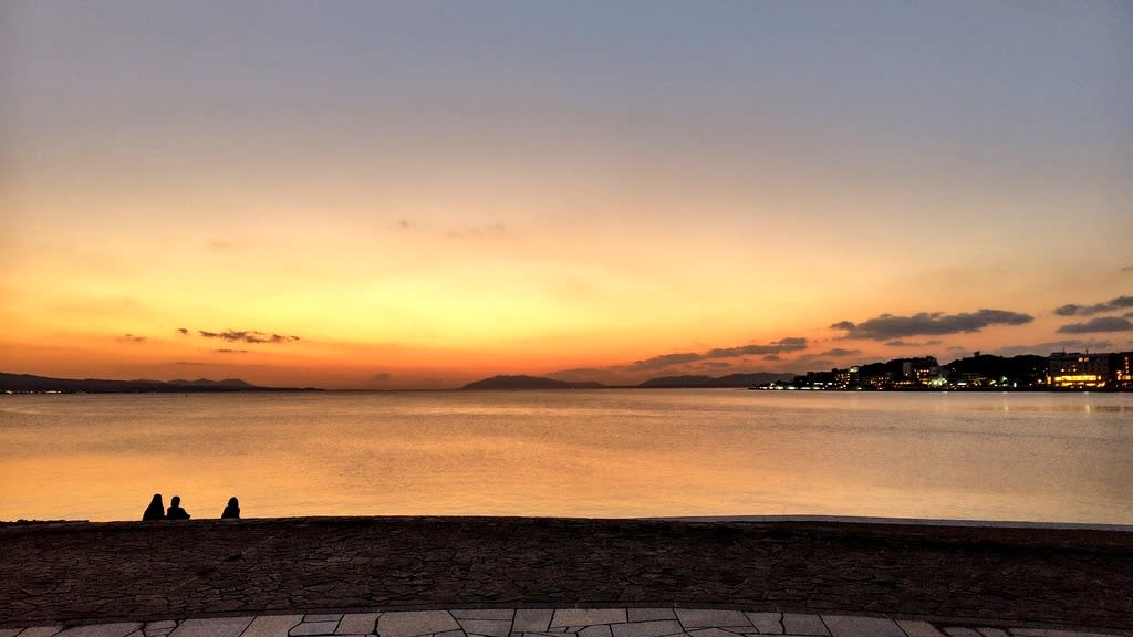 いったんホテルに戻って荷物を置いて、夕方の宍道湖をみながら松江しんじ湖温泉駅で歩いた。