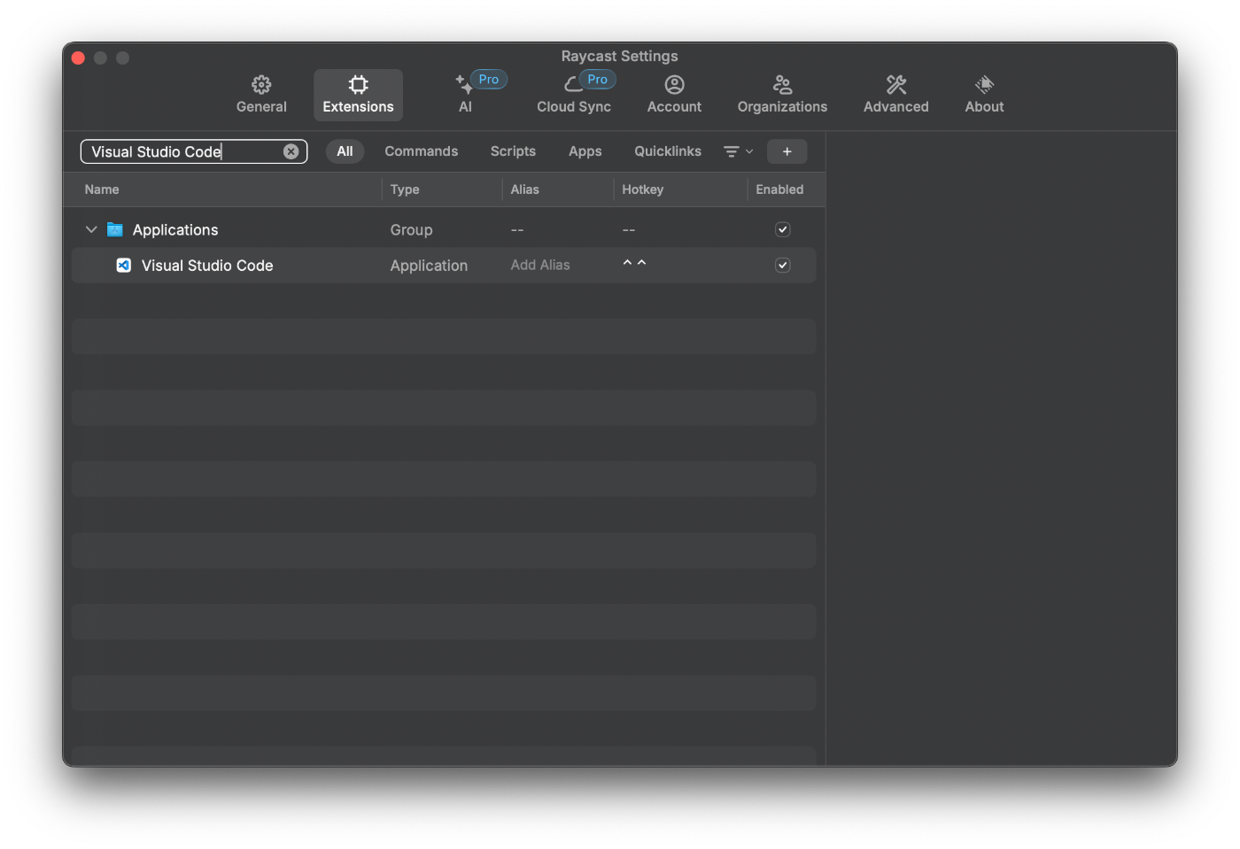 Raycast上の設定で hotkey ctr ctr を割り当てる。