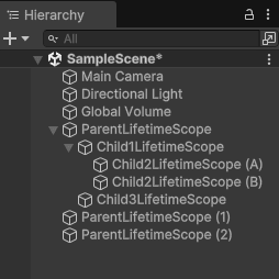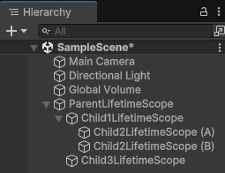この場合は単純で、 VContainer のドキュメントにある通り ParentLifetimeScope