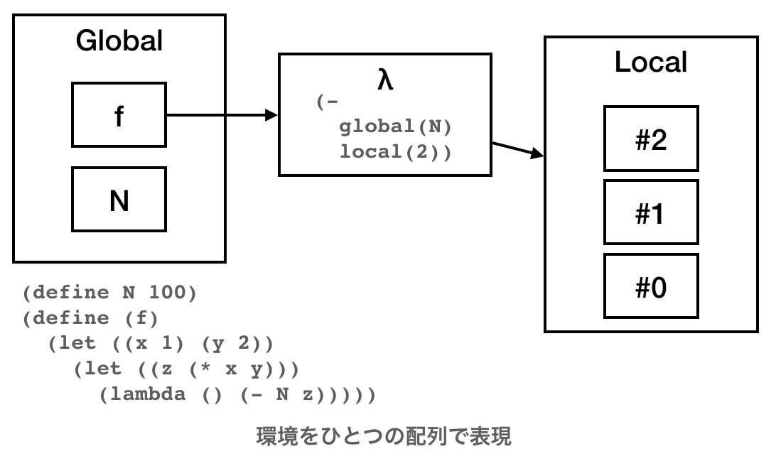 というのが正攻法だが、関数呼び出しのたびに環境をコピーするのが嫌ですよね。というわけで