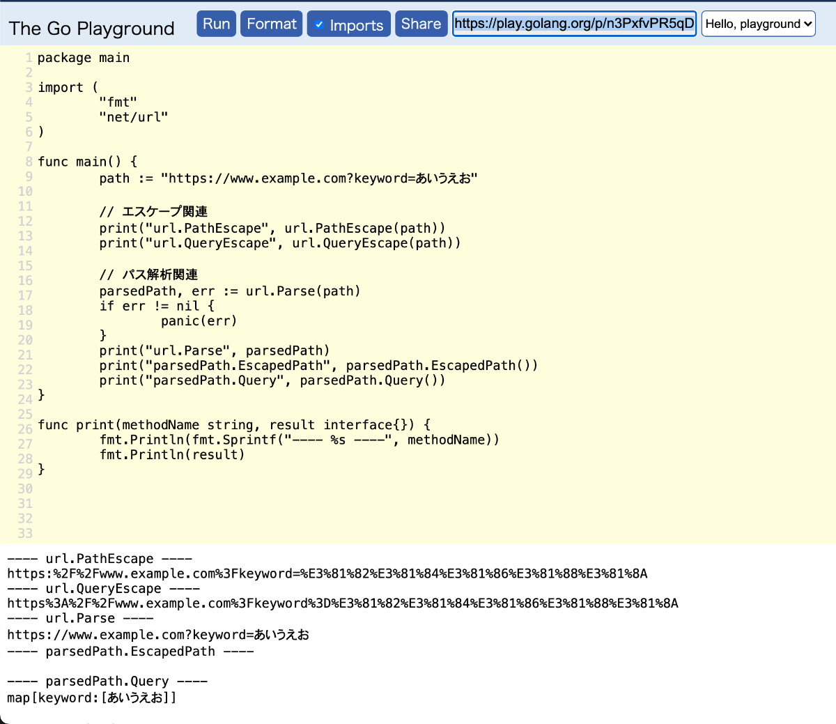📝[Go]net/urlパッケージでURLエンコード2021/02/04に公開GoRabeetechこんにちは、Rabeeです。 外部APIを呼び出す際に値をURLエンコードしてクエリストリングで送って欲しいという要件があり各種メソッドを調べている途中だったのですが、不要になってしまったので供養したいと思います。 弊社では独自フレームワークを利用しているので、 この辺りあまり気にせず利用していたのですが、 一階層掘り下げると知見が広がってたのしいですね〜 go playground https://play.golang.org/p/n3PxfvPR5qD キャプチャ 以上です。 Discussion